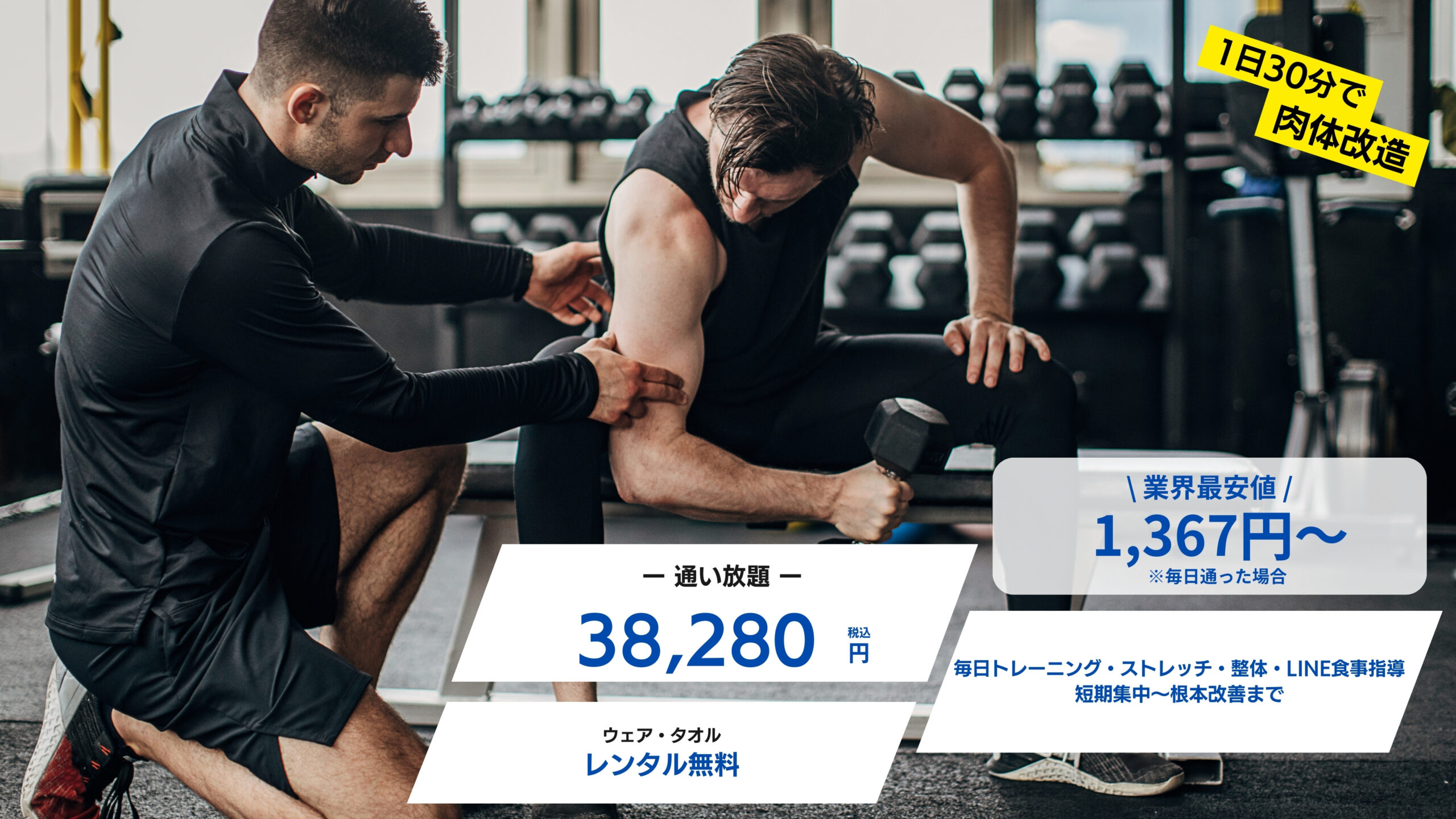 梅田店・高槻エリアで「30分の通い放題プラン」を中心に、忙しいビジネスマンや仕事帰りでも通いやすいペースでパーソナルトレーニングを受けていただけます。